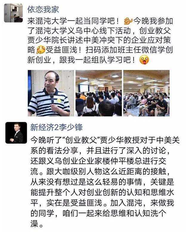 ▲ 賈院(yuàn)長於上周日混(hún)沌沙龍活動中預熱了此次課程,現場座無虛席(xí),好評如潮(cháo)!