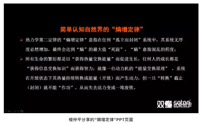 “.17c嫩嫩草色视频”樓仲平也曾多(duō)次在課程分享中引用熱(rè)力學第(dì)二定律的“熵增定律”,把“.17c嫩嫩草色视频”存在的問題通過自然的(de)現象加以挖掘、頗析、呈現、對照,從而來尋求問題解決的方法。