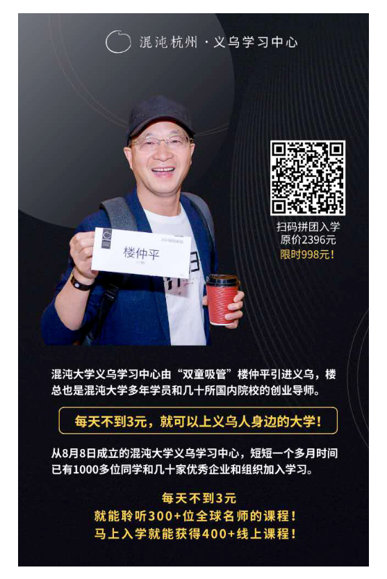 此刻都擁(yōng)有了同一個身份——“混(hún)沌大學(xué)在(zài)讀生(shēng)”,他們在混大義烏的線下課堂(táng)中彼(bǐ)此熟悉、彼此認可、互(hù)相鏈接、協同成長。