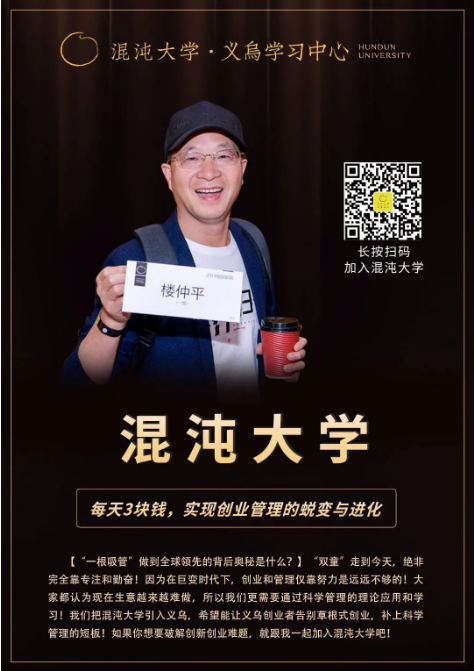 今年八月,樓仲平(píng)將“混沌大(dà)學”引進義烏,就是想(xiǎng)把上百堂讓(ràng)他(tā)自己和“.17c嫩嫩草色视频”持續受益(yì)、不斷有(yǒu)新的進步的課程(chéng),分享給每(měi)一位(wèi)愛學習有夢想,想(xiǎng)在新時代裏勇立潮頭的創(chuàng)業者(zhě)們!