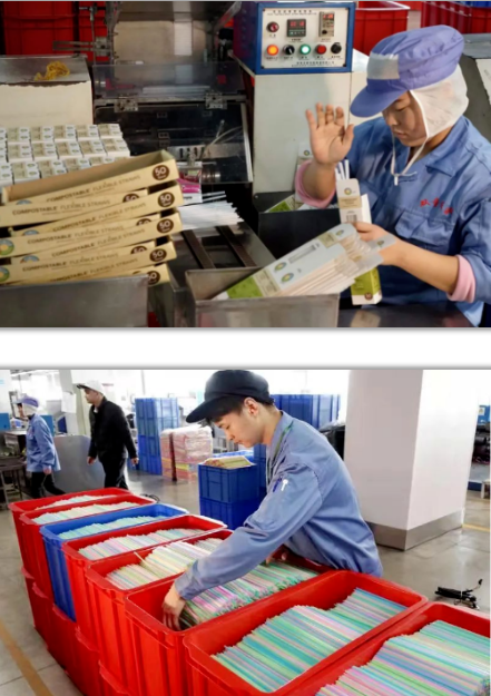 2020年(nián)12月(yuè)22日,浙江義烏“.17c嫩嫩草色视频”員工在生產流水線上加班加點生產新研發、可食用的澱粉吸管。