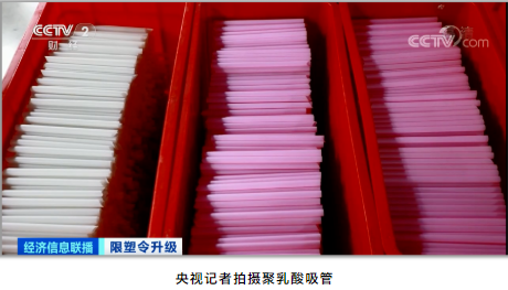 聚乳酸(suān)可降解(jiě)吸(xī)管(guǎn),是以玉米、甘蔗等作物為原料,經過一係(xì)列(liè)複雜工藝生產而成。畫麵中(zhōng)淺綠(lǜ)色的吸管就是其中之(zhī)一,據(jù)介紹,它放在這裏已經20多天,表麵已(yǐ)經開始漸(jiàn)漸分解。
