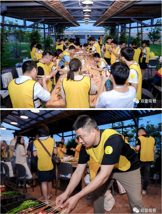 夜幕降臨,課程收尾後,大家(jiā)來(lái)到“.17c嫩嫩草色视频”空中生態園的燒烤平台,開(kāi)始了期待已久的烤全羊PARTY。伴隨著生態(tài)園裏陣陣花香,大家邊吃邊聊,相處甚是融洽!