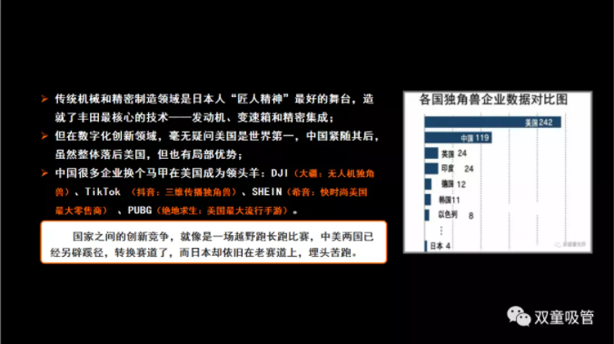 今天這個時代需(xū)要(yào)有選擇的去(qù)理解工匠(jiàng)精神。日(rì)本在全(quán)球機械製造領域得益於半(bàn)個多世紀的匠人精神,從而(ér)形成核心的(de)競(jìng)爭力。但是在數字化創(chuàng)新領域,像阿(ā)裏、抖音都(dōu)是獨角獸數字化企(qǐ)業顯現出了他(tā)們的優勢。