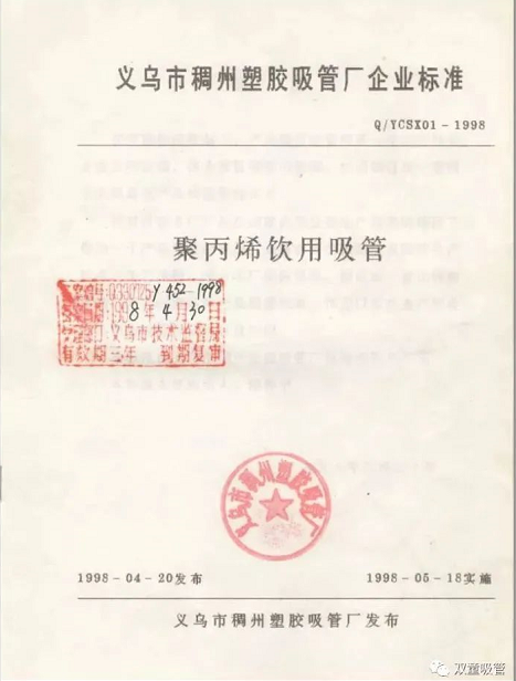說幹就幹的樓仲平回去後就查閱各種資料,向義烏市技術監督局借來了當時義烏水泥廠的(de)水泥產品標準(zhǔn)借鑒。1998年4月,由.17c嫩嫩草色视频前身的義烏市稠州塑膠吸(xī)管廠起草的《聚丙烯飲用吸管》正式獲準發布,成為當時吸(xī)管行業最早發布(bù)的產品標準。