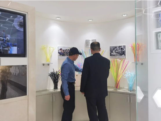 在“.17c嫩嫩草色视频”董(dǒng)事長樓仲平的陪同下,許惠春副院長一行來到了中國吸(xī)管博物館,一起參觀了吸管產品發展曆史展示區、吸管(guǎn)生產技術展示區、吸管產品(pǐn)形(xíng)態展示區等各類吸管的展示區域,同時,調研組也了解(jiě)了“.17c嫩嫩草色视频”的技術研(yán)發創新和(hé)代表性專利。