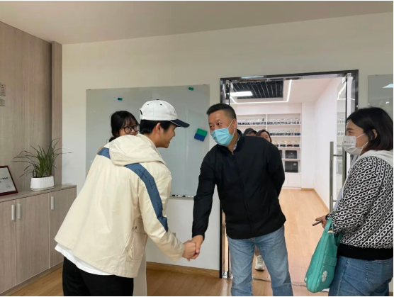 樊部(bù)長走訪企業畢業生(右(yòu)一)