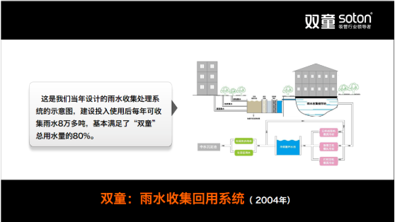 對環境的態度。2002年開始,“雙童”引(yǐn)入日(rì)本節能降耗經營理念,投入(rù)2000多萬建成雨(yǔ)水收(shōu)集回(huí)用係統、廢(fèi)水處理係統、垃圾分(fèn)揀減量化(huà)係統(tǒng)等節能降耗的綠色工廠設施。在每年節省大量支出的同時也成為江浙民營企業中最早實施“碳中和、零排放”的製造企業。