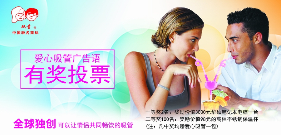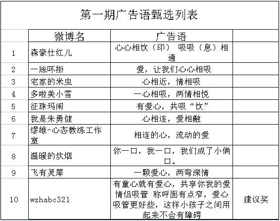 被征集的廣告語將用於我們 “愛心吸管”產品所有包裝(zhuāng)正麵的廣告詞。