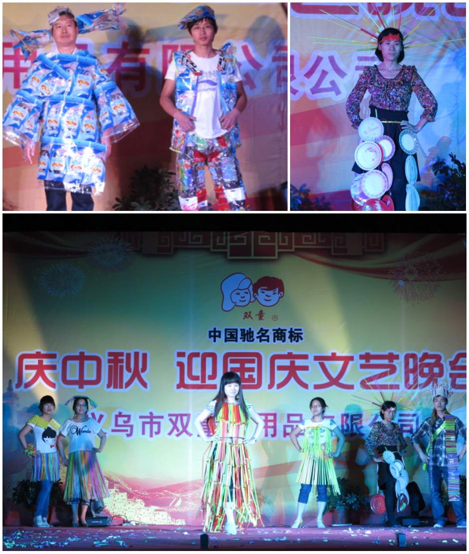 瞧,外銷部為大家帶來的創意時裝表演(yǎn),衣服不租不借,都是本部門人員精心設計,吸管製作衣服、裙子、包裝袋做的(de)馬甲、褲子,讓在(zài)場的觀眾大跌眼鏡、讚歎不已!