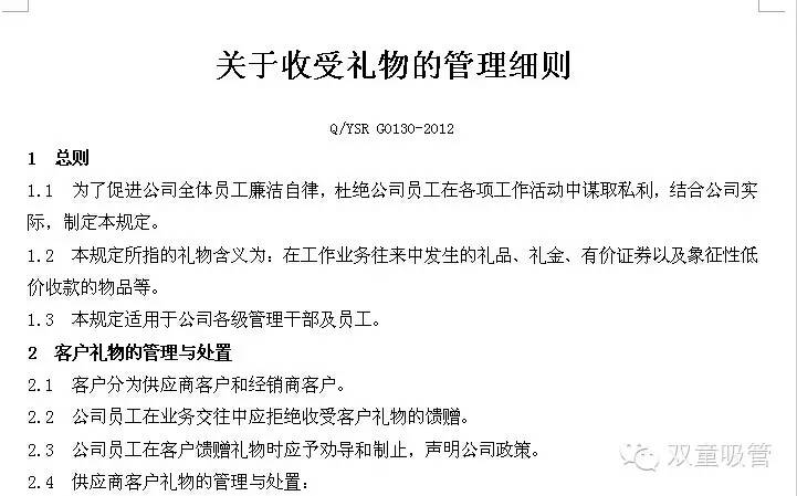 《關於收受禮物(wù)的(de)管理細則》部分內容