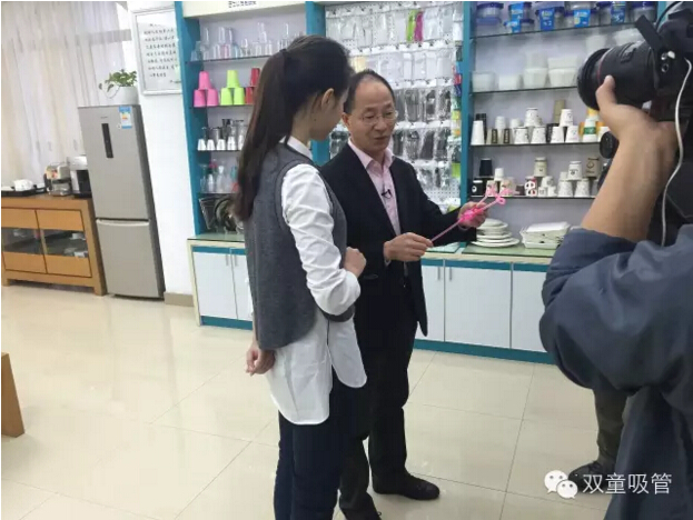 看,我們的愛心(xīn)吸管、哈哈吸(xī)管、眼(yǎn)鏡吸管(guǎn)成功地吸引了攝製組的注(zhù)意,將(jiāng)鏡頭對準它們進(jìn)行特寫拍攝,並有當家人樓總為它們做(zuò)介(jiè)紹!在這期節目播出後(hòu),我們的創新吸管將刷新千萬人對於一根(gēn)小小(xiǎo)吸管的傳統簡單認知,讓(ràng)人們知道,原來吸管也可以是一種時尚!