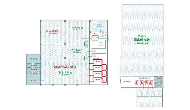 雨水被收集起來,最後全部用(yòng)於車間的工業冷卻用水和部分生活用水,每年為公司(sī)節約用水20多萬噸(dūn)左右,直接(jiē)產生經濟效益近150萬元左右。