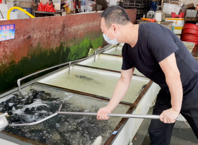 各種(zhǒng)菜品都會在現場精心挑選,如采購魚類會選擇活魚