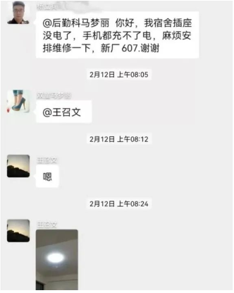 後勤團隊實時在宿舍溝通(tōng)群(qún)內(nèi)