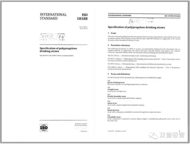 2016年 | 《聚丙(bǐng)烯飲用吸管規範》ISO國際標準 |