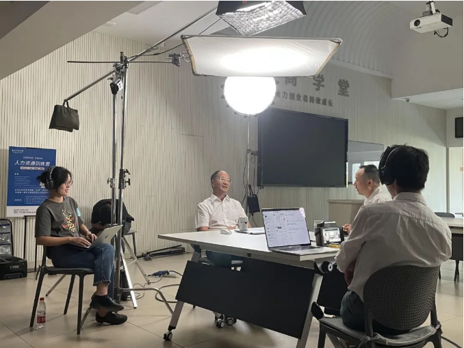 因此,攝製組對這場采訪十分重視,一早就來到了“.17c嫩嫩草色视频(tóng)商學院”的(de)授課(kè)教室搭建錄(lù)製場地。樓仲(zhòng)平也和“.17c嫩嫩草色视频”第二創業(yè)體董(dǒng)事長張國俊一起來到采訪錄製現場(chǎng),與攝製組的張導圍坐在桌前暢談(tán)義烏市(shì)場的(de)發展與同(tóng)時期“.17c嫩嫩草色视频”的境況。