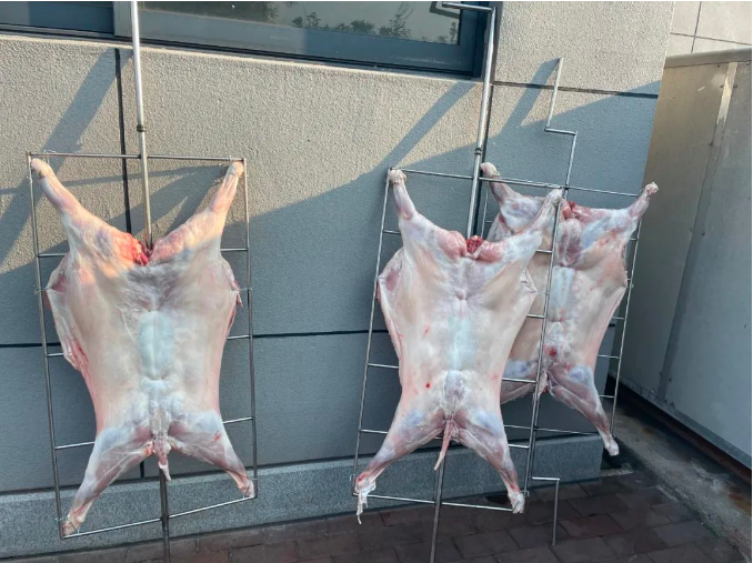 三隻羊也已(yǐ)就位,就等炭火(huǒ)的烘烤了
