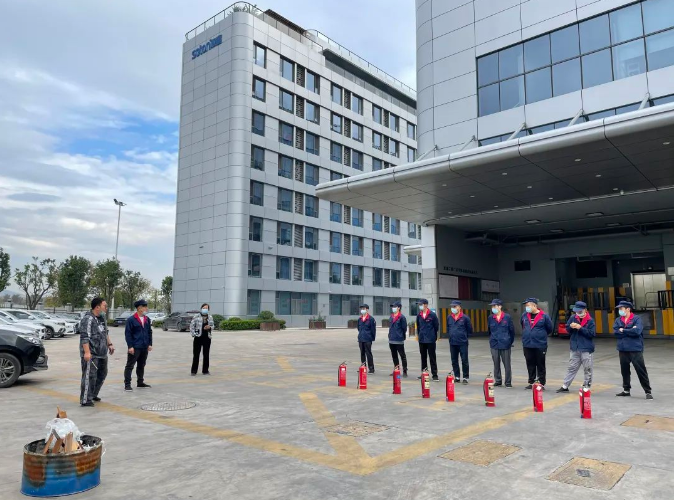 員工們正在(zài)學習如何使用滅火器