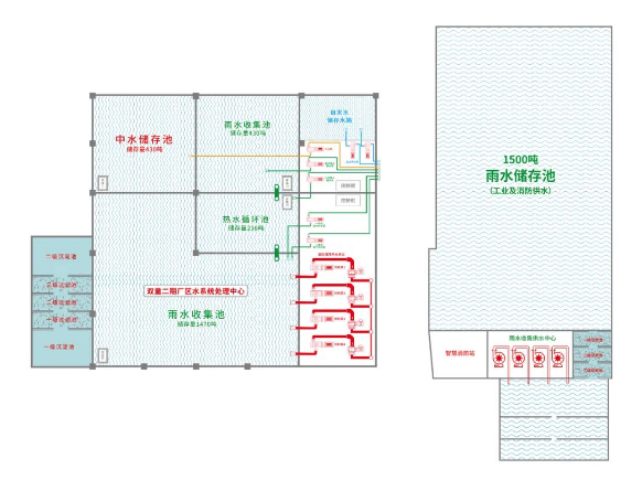 如此實用的係統是如何運作的呢?秘訣就在於這個小型的自來水廠——水係統水泵房。這間不起眼(yǎn)的房間,是整個廠區節水係統運作的動力(lì)源,為雨水收(shōu)集和用水輸送提供動力。