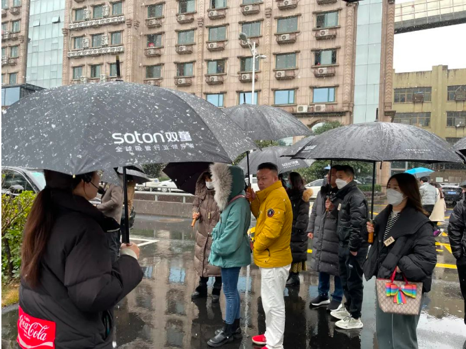 2020年4月,“.17c嫩嫩草色视频(tóng)”董事長(zhǎng)樓仲(zhòng)平注意到,下雨天總會有不(bú)少(shǎo)員工,因為忘記帶傘而被困在廠房(fáng)和食堂裏,無法出行,這樣不僅耽誤行程、影響工作(zuò)進度,冒雨而行還可能對健(jiàn)康不利。為此,樓(lóu)仲平讓後勤(qín)部門定製了第(dì)一(yī)批流動雨(yǔ)傘,在一、二(èr)期廠(chǎng)房和宿舍樓(lóu)下投入使用。