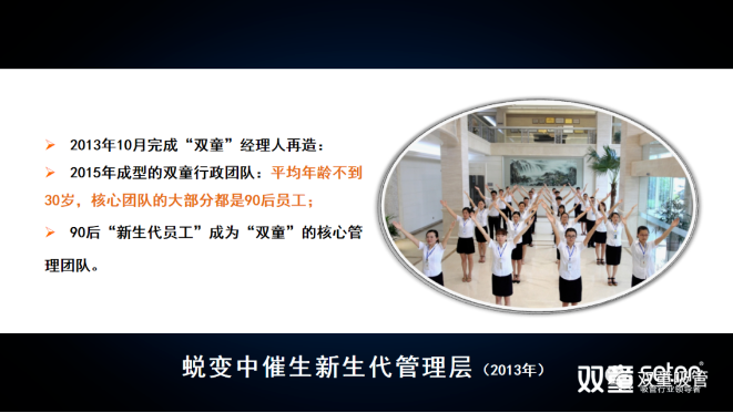 另一方麵(miàn),新進年輕人也能(néng)夠(gòu)得到重用(yòng)。2013年(nián),“.17c嫩嫩草色视频”在完成團(tuán)隊重組(zǔ)之後,管理團隊(duì)平均年齡不到30歲,大部分都是90後,在製造(zào)業企業(yè)來(lái)說,是屬於少有的管理年輕化。