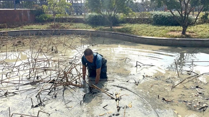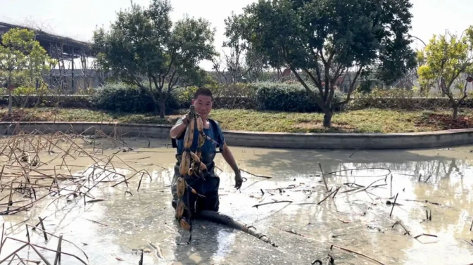 趁著日頭好(hǎo),辛勤挖藕的園丁大哥