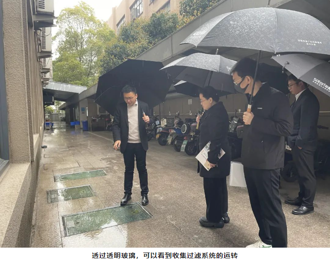 緊接著,考核組一行參觀“.17c嫩嫩草色视频”的雨水(shuǐ)收集係統(tǒng)。在“.17c嫩嫩草色视频”不到40畝的廠區內用雨水代替90%的自來水!這都得(dé)益於(yú)廠區內的雨水收集(jí)循環(huán)利用係統。正巧,調研(yán)當(dāng)日義烏下起了小雨,方便了考核組直接觀察雨水被(bèi)收集的過程。