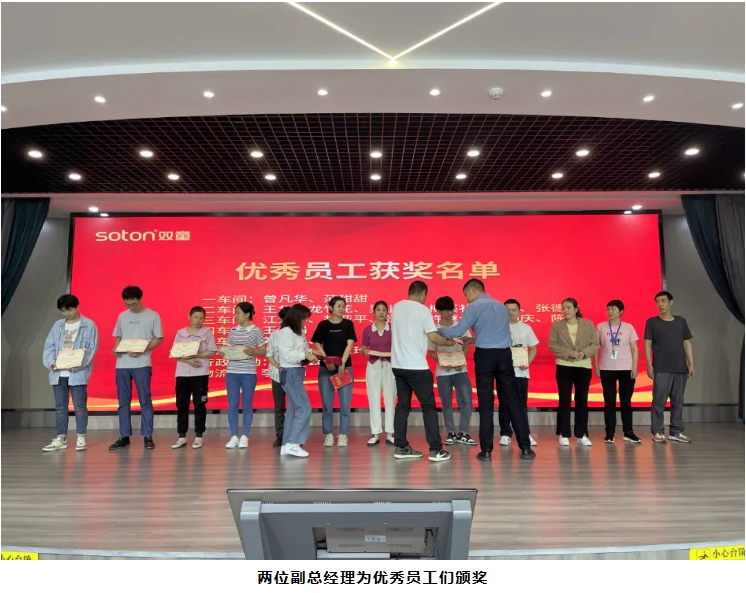 當頒獎音樂響起時,“優秀員工”們在陣陣掌聲中移步舞台中央,副總經理(lǐ)李(lǐ)秀前、毛斌為其頒發榮譽證書,這也是公司對一線員工的(de)重視及肯定!當聚光燈身上的那一刻,相信(xìn)對每一位“優秀員工”來講都(dōu)意義非凡,對全體員工來講也(yě)是莫大(dà)的鼓舞和激勵!