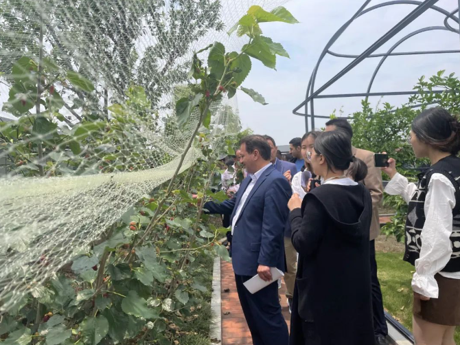 枝頭飽滿(mǎn)的桑葚成功引起了阿拉伯參訪團們的注意