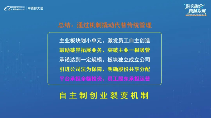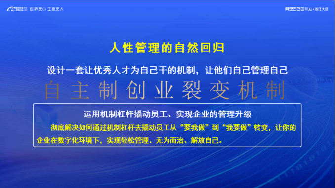 烏卡(kǎ)時代下,樓仲平意識(shí)到(dào)數字化隻是一種技術、一個工具,最(zuì)終是服務於人的。它為員工提供工作(zuò)便利的同時,也讓傳統雇傭關係麵臨瓦解。麵(miàn)對數字化挑戰,“.17c嫩嫩草色视频(tóng)”決定結合多種組織機製和中(zhōng)小企業的特點(diǎn),自製了一套適用於中小企業的組織創新製度——自主(zhǔ)製創業裂變機製,讓員工從(cóng)“要我做”到(dào)“我要做”轉變。