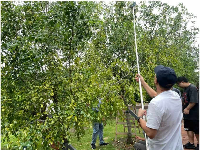 用手搖、用竹竿(gān)敲、爬(pá)梯子(zǐ)摘、在樹下撿漏……為了能裝滿自(zì)己的小籃(lán)子(zǐ),大家(jiā)也都(dōu)沒閑(xián)著(zhe),“各顯神通”,現場是一片“手忙腳亂”!