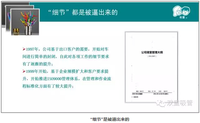 “細節”是被逼(bī)出來的(de),通過和日本客戶的合作,我們不斷的提升自我,通過對車間、寢室進(jìn)行(háng)改造等一係列措施(shī)來提升產品的(de)質量(liàng)。