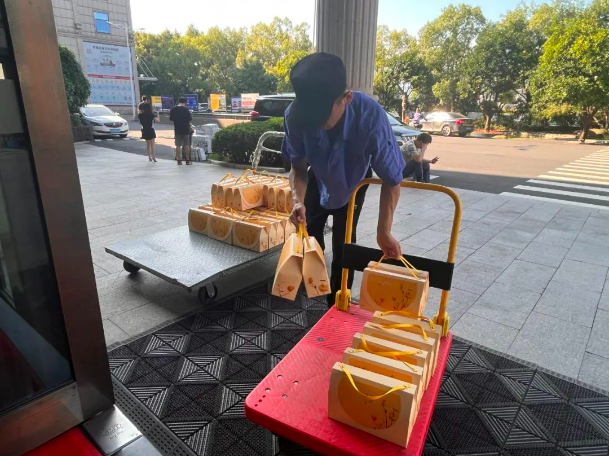 中秋福利準備好(hǎo)啦!收到領取消息的小夥伴們,立馬(mǎ)拉著推車火速趕來了(le)領取現場,把本部門的福利全領走啦!有美味(wèi)的月餅,還有酸酸甜甜的牛奶!