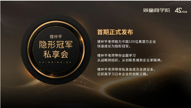 明年3月開營的第二期樓仲平·隱形冠軍私享會,現已正式開始(shǐ)招(zhāo)募。