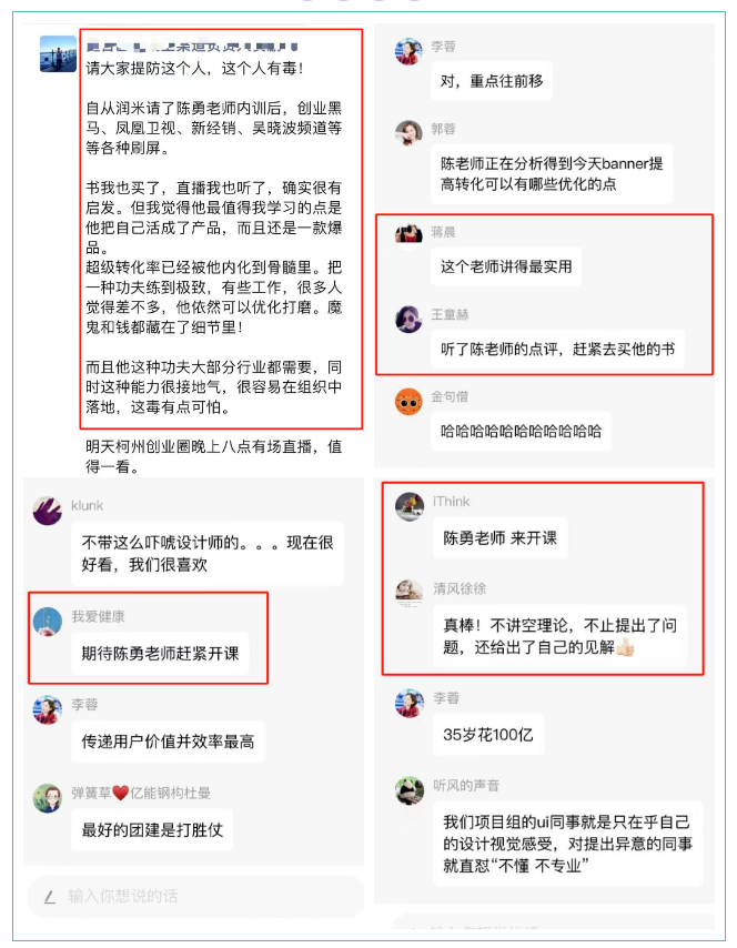 陳勇老師在得到等平台分享時,好評不斷,他的課程不僅大部分行業需要,而且很接地氣,很容易落地!