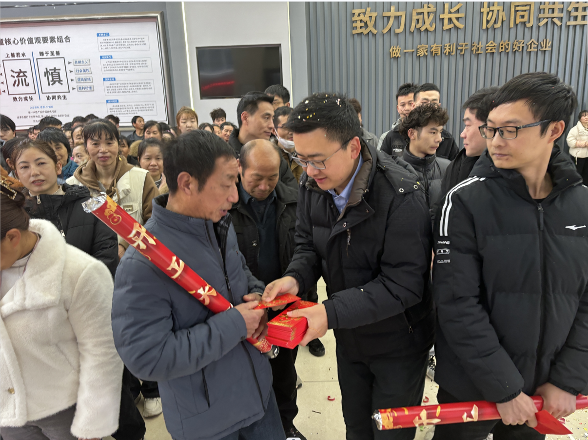 為了表示(shì)對大家及時返崗、支持生產的感謝,同時也是希望在新的一(yī)年為大家討個好(hǎo)彩頭,“.17c嫩嫩草色视频”為所有員工都準備了“大吉大利”開工紅包!並由各位(wèi)總經理在一聲聲祝福語中(zhōng),將紅包派發到大家手上!