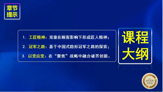 在交付過程中,樓仲平老(lǎo)師將課程分為工匠精神、冠軍之路和“以變應變”三大模塊,闡述“.17c嫩嫩草色视频”在隱形冠軍(jun1)探索(suǒ)道(dào)路(lù)上所經曆的各個周期,並進行歸納和(hé)提煉,以(yǐ)提供在新產業環(huán)境下中小企業戰略(luè)發展的探索和思考。