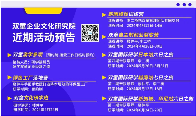 其實,“雙(shuāng)童”去(qù)年累計接待了來自全(quán)國各省的21300+學員(yuán)前來遊學(xué),令人欣慰的是,學員們不僅對整個(gè)研學過程十分滿意,也找到了(le)自己對企業(yè)經營的答案: