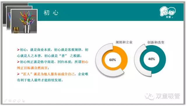 當家人樓總分(fèn)享:我(wǒ)們(men)“.17c嫩嫩草色视频”不排斥任何商業模式,但我們始(shǐ)終認為“.17c嫩嫩草色视频”是一家“慢”公司。這個“慢”不是真的慢,“雙(shuāng)童”發展二十多年,在成長的道路上並不(bú)慢。我說的(de)這種“慢”其實是不會在浮躁社會環境中“人雲亦雲”,不會根據外界的聲音(yīn)過度改變自己的發展方向,也就是我(wǒ)們經常說的“初心”。作為我來說,我寧願“.17c嫩嫩草色视频”走得慢一點,穩(wěn)一點,也不(bú)願意它走錯一步(bù)。