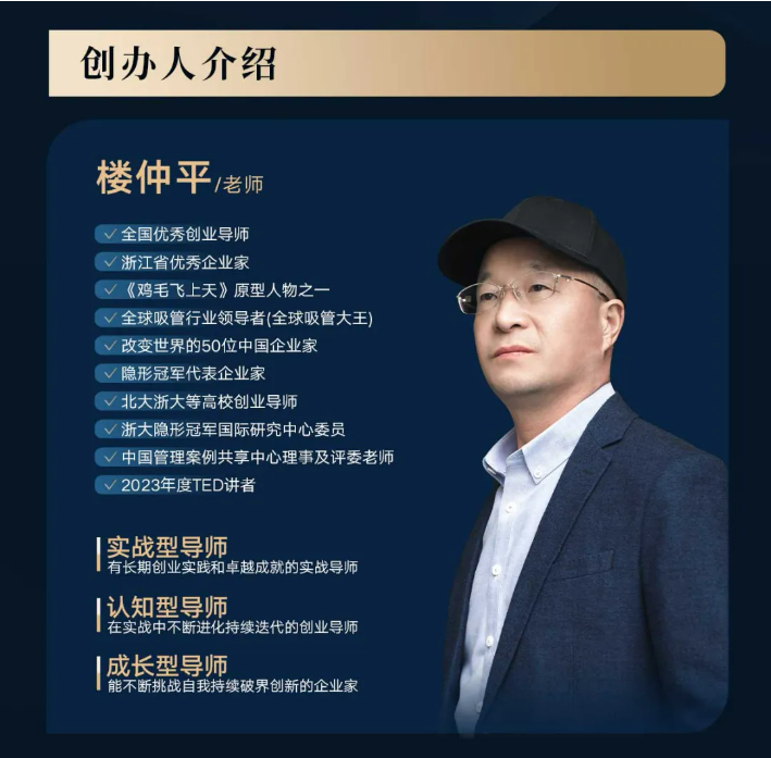 “隱形冠軍樓仲平思享薈”是樓仲平老師唯一一(yī)個全麵係統(tǒng)交付46年創(chuàng)業曆程的(de)經驗總結和思維模型的課程。