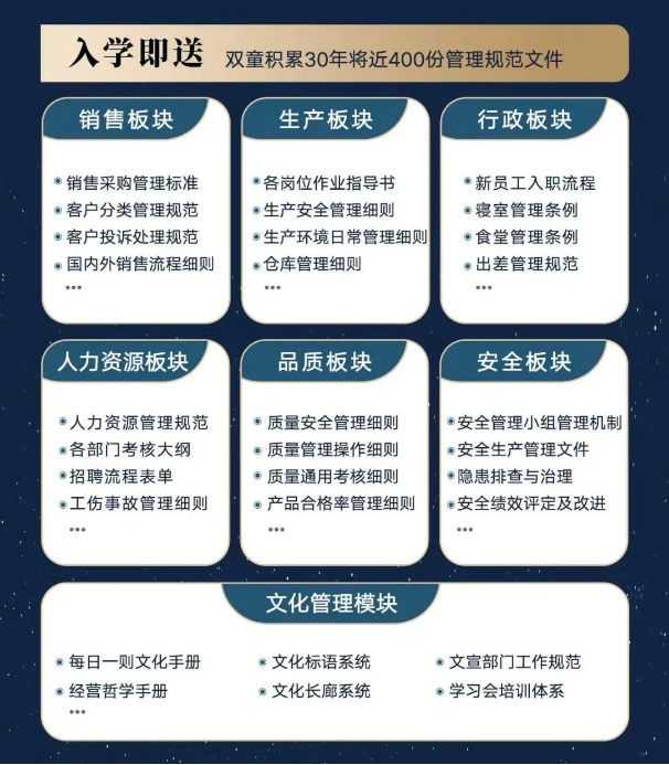 所以,入學“隱形冠軍(jun1)樓仲平(píng)思享會”之後(hòu),項目組會(huì)將“.17c嫩嫩草色视频(tóng)”積累了30年、包含了銷售、生產、行政(zhèng)、人類資源、品質、安全和文化管(guǎn)理7大板塊(kuài),將近400分管(guǎn)理(lǐ)規(guī)範文件,全部打包給學員,幫助學員企業能夠(gòu)全麵(miàn)借鑒.17c嫩嫩草色视频管理經(jīng)驗、少走彎路(lù)、少采坑!