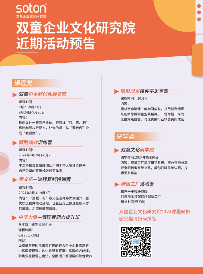 如果(guǒ)你也想讓企業(yè)能(néng)夠留住優秀人才、激(jī)發員工活力、實現共同富裕,別猶豫,你需要【自主製創業裂變營(yíng)】賦能!