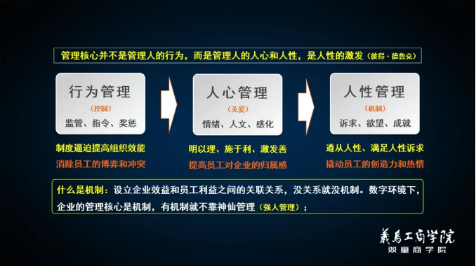 要徹底解決以上問題,就必須正(zhèng)確認識管理的本質:管理不是管人的行為,而是管人心(xīn)、管人性。從而製(zhì)定滿足人性的機製!