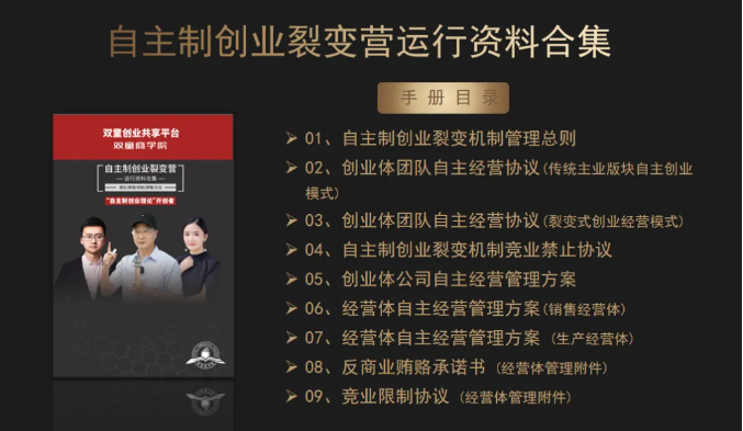 3、交付自主製創業裂變模式(shì)的各項規則、文本(běn)、合同等書麵(miàn)資料