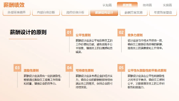 在整個課程交(jiāo)付中,李二橋老師會將課程拆解為認(rèn)知篇、薪酬篇、績效篇和實操篇等四大板塊,循序漸進,讓學員們從對薪酬和績效的認知到實操(cāo)慢慢(màn)過渡。除(chú)此之外,李二橋老師還會交付(fù)薪酬製定六步法(外部(bù)環境調查、內部自我診斷、崗位價值分析、薪酬結(jié)構設計、方(fāng)案實(shí)施、年(nián)度效果複盤等);以及績效方案八步驟、銷售提成六方案等實用性工具。