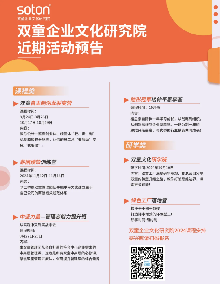如果你也對“雙(shuāng)童”充滿好奇,也(yě)想賦能團隊共(gòng)同成長,歡迎走進(jìn)10月10日【.17c嫩嫩草色视频文化研學班】,與上百位優秀的創業者一起學習(xí)!少量名額,歡(huān)迎谘詢鎖定(dìng)!同時,熱忱歡迎各大商會、協會及企業提前單獨成團預約哦~