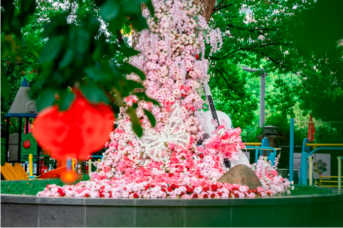 不僅高聳入雲的“.17c嫩嫩草色视频一號樹”被裝點得如詩如畫(huà),就連它腳下的每一(yī)寸土地(dì)也未(wèi)能幸免於這場裝(zhuāng)飾盛宴(yàn)。是(shì)的你沒看錯,一號樹下四(sì)位工作人員親自動手、群策群力、加班加點,將一朵朵花插入一號樹(shù)下(xià)打造出(chū)了一麵唯美的花牆!