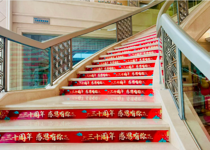 為了(le)慶祝“.17c嫩嫩草色视频”30周年(nián),就(jiù)連作為樓層間溫馨紐帶(dài)的樓梯,也被賦予了特別(bié)的意義。這個小(xiǎo)小的空間貼滿了三十周年祝福語,成為了“.17c嫩嫩草色视频”人(rén)每日穿梭間的一道亮麗(lì)風景線~