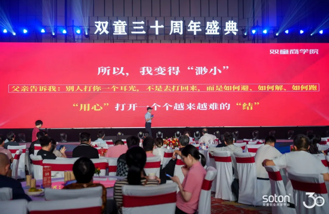 雞毛換糖的經曆,也鍛煉了他的定力,讓(ràng)他不再“一山望過一山高”。分(fèn)享一開始樓(lóu)總就告訴大(dà)家:“雙(shuāng)童能堅持30年,不是我心放大了,而是心放小(xiǎo)了,不是因為我的雄心壯誌,而是因為我的如履薄冰”,因為心放(fàng)小了,才(cái)有(yǒu)足夠的(de)定力,把最難做的吸管行業一直(zhí)堅持下去。